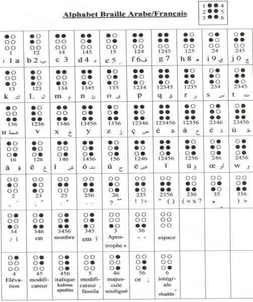 ALPHABE BRAILLE ARABE/FRANCAIS/ESPAGNOL